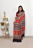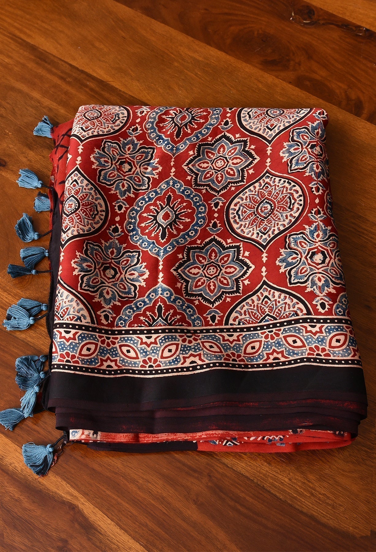 AJRAKH MAROON MODAL SILK DIGITAL PRINTED SAREE