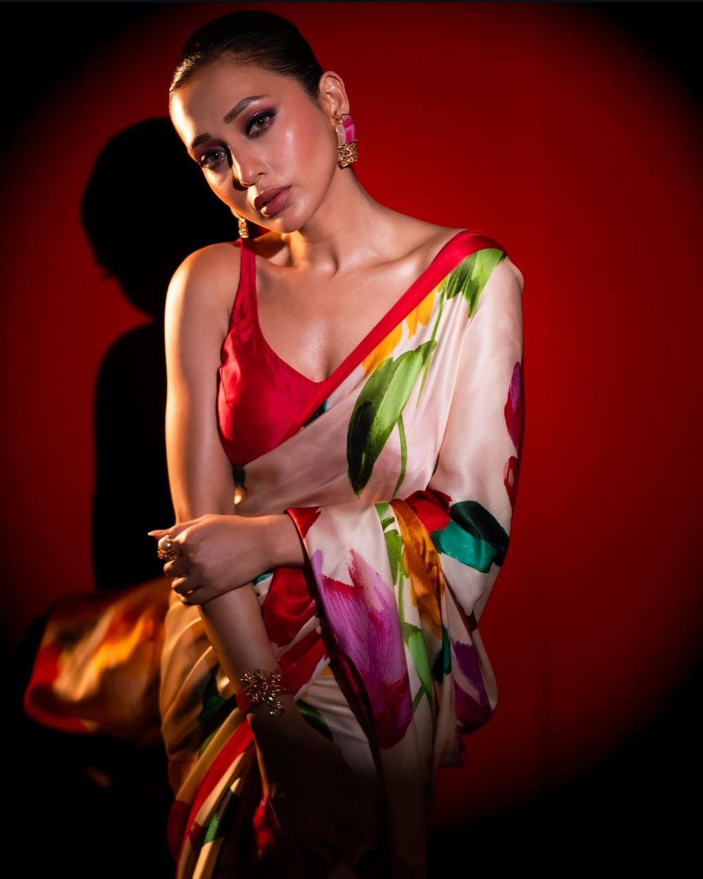 Ajrakh Digital Print Border with Ajrakh Rich Pallu With Contrast Blouse