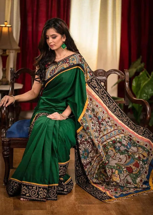 Elevate your wardrobe with the Viscouse Silk KALAMKARI Natural Printed Saree. Crafted from luxurious red...