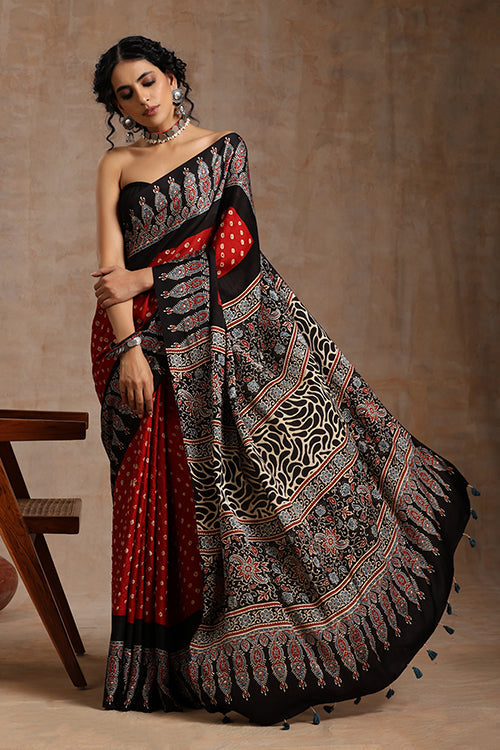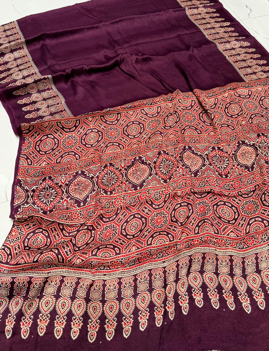 Ajrakh Modal Silk Premium Saree
