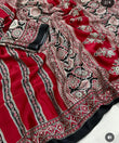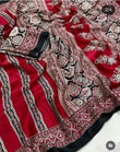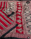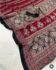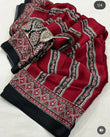 ATTRACTIVE BLACK RED LINING SAREE WITH AJRAKH PALLUU