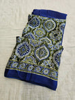BLUE ELEPHANT PRINTED AJRAKH SAREE