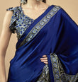 Ajrakh Digital Print Border with Ajrakh Rich Pallu With Contrast Blouse