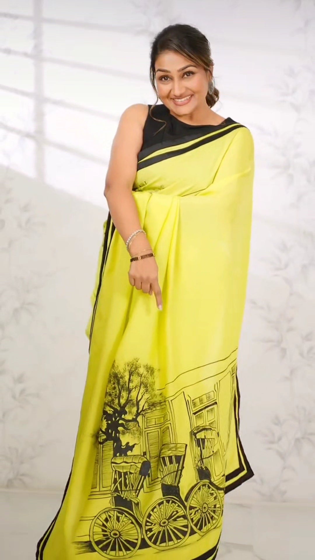 CELEBRITY WEAR LIME YELLOW COLOR NATURE PRINTED SAREE.