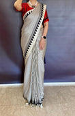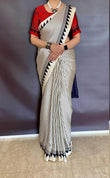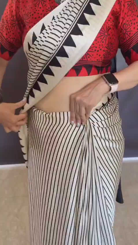 "Exclusive Black & White Stripe Ajrakh Cotton Saree – Handcrafted Elegance"