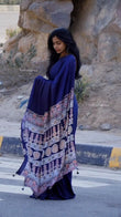 ROYAL BLUE COLOR AJRAKH PALLU SAREE.