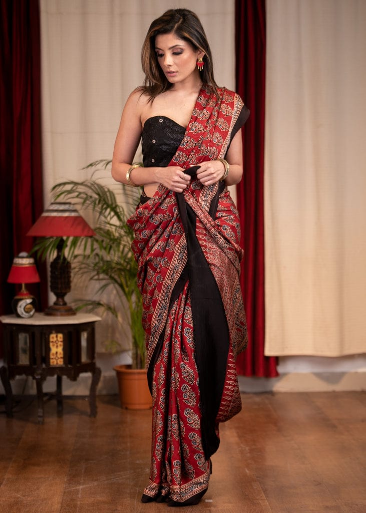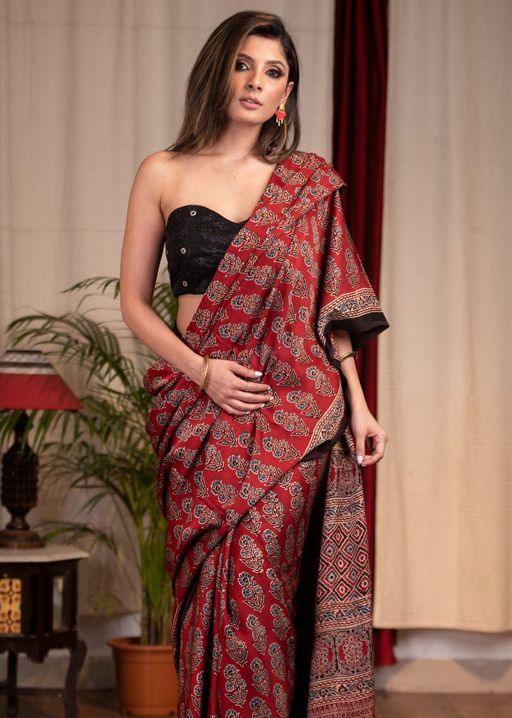 MAROON COLOR AJRAKH SAREE