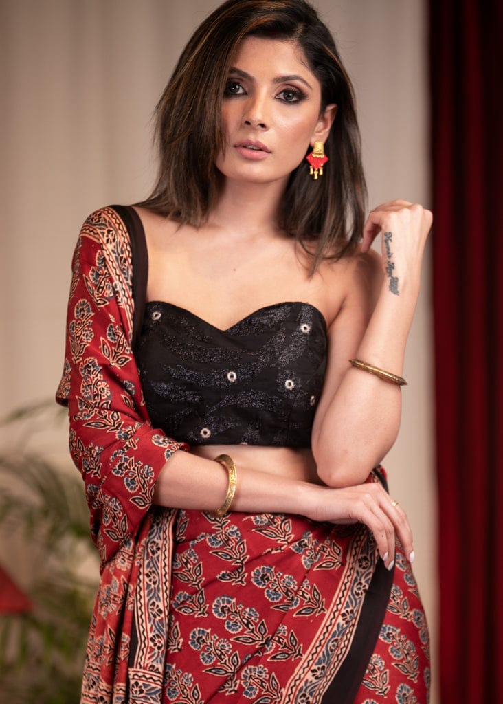 Ajrakh Digital Print Border with Ajrakh Rich Pallu With Contrast Blouse