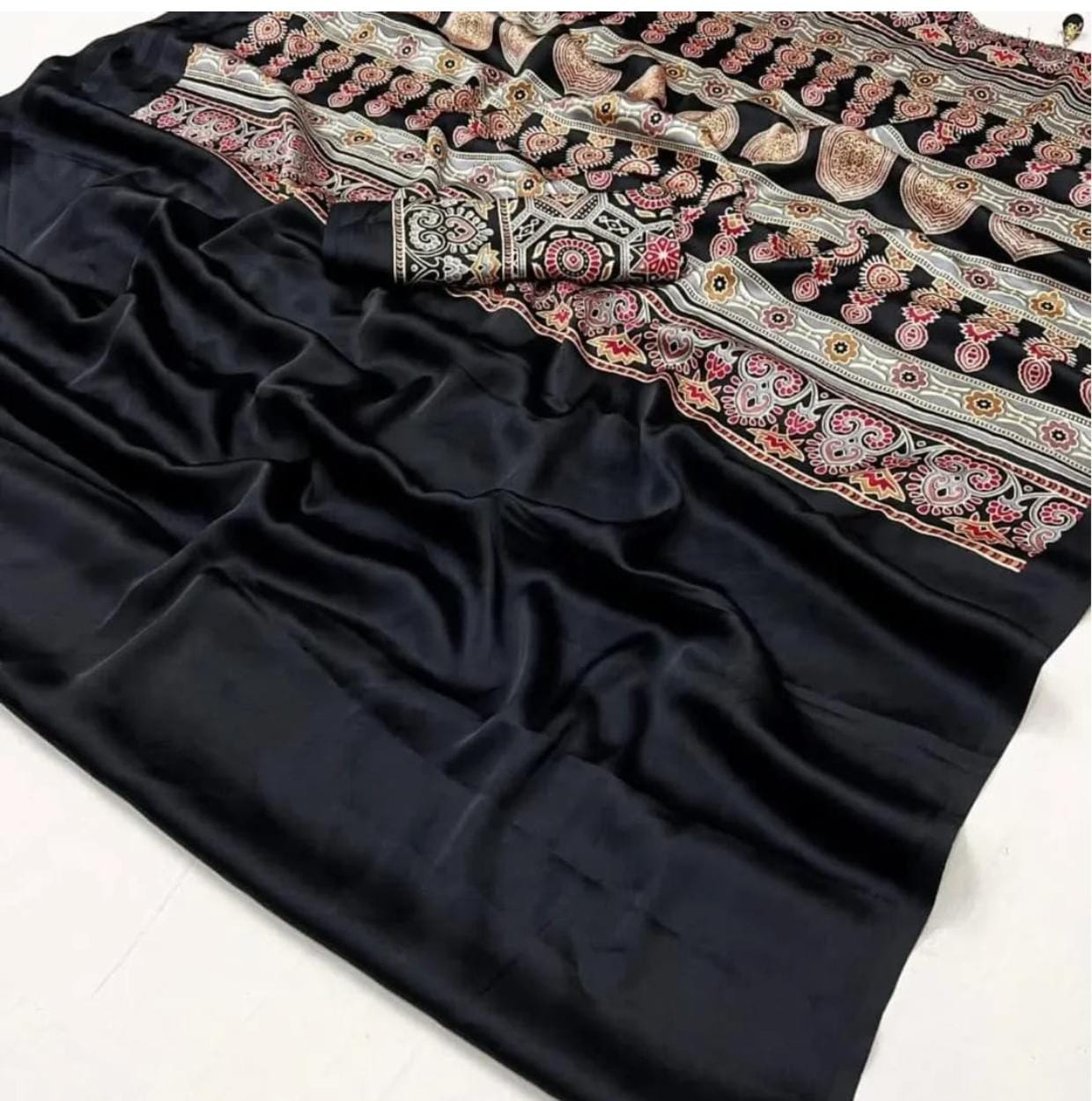 DESIGNER BLACK COLOR AJRAKH PALLU SAREE