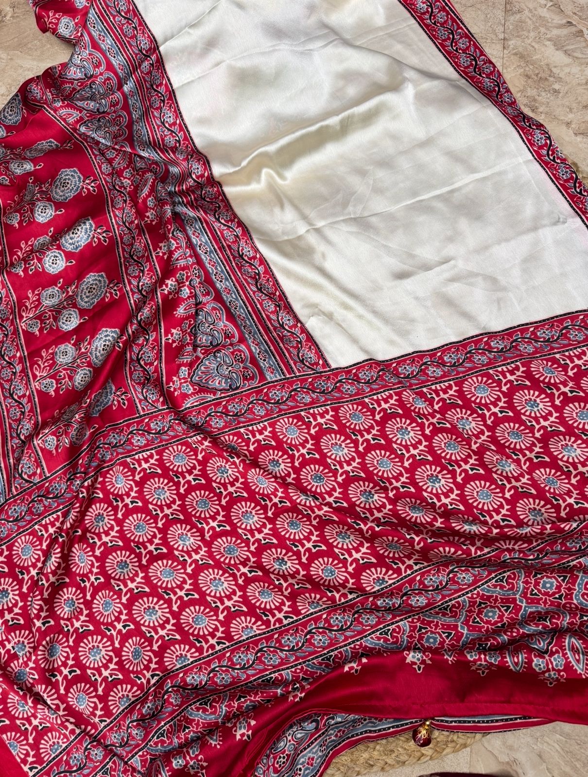 Semi Modal Silk Saree With Ajrakh Print