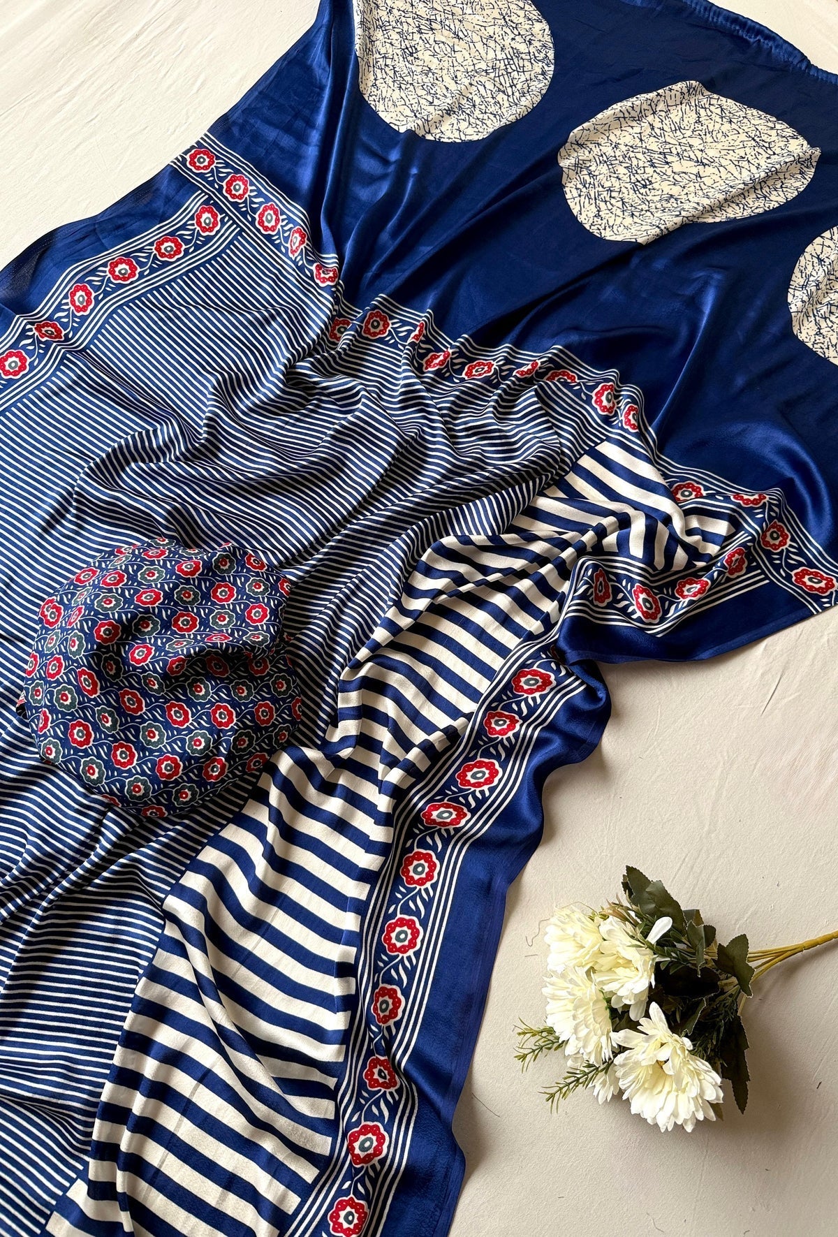 • Elevate your wardrobe with the Akruti Modal Silk Ajrakh Natural Printed Saree. Crafted from luxurious red modal silk, this saree features exquisite Ajrakh natural prints that blend traditional artistry with contemporary style. Its lightweight fabric ensures effortless draping, allowing you to achieve a polished look quickly and comfortably. Perfect for those who appreciate expert craftsmanship and modern elegance in one graceful ensemble.