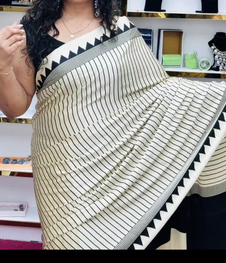 WHITE BINDI TEMPLE BORDER AJRAKH SAREE