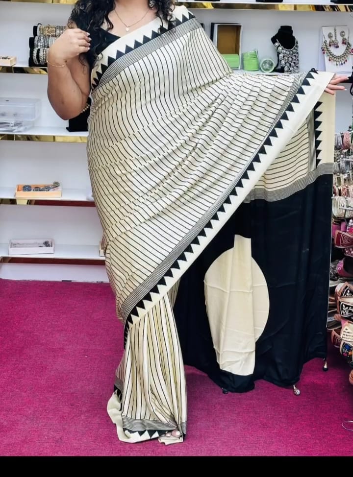 Ajrakh Print Premium Silk fabric Saree With very soft in texture.. Light weight Silk Fabric with a rich glaze .